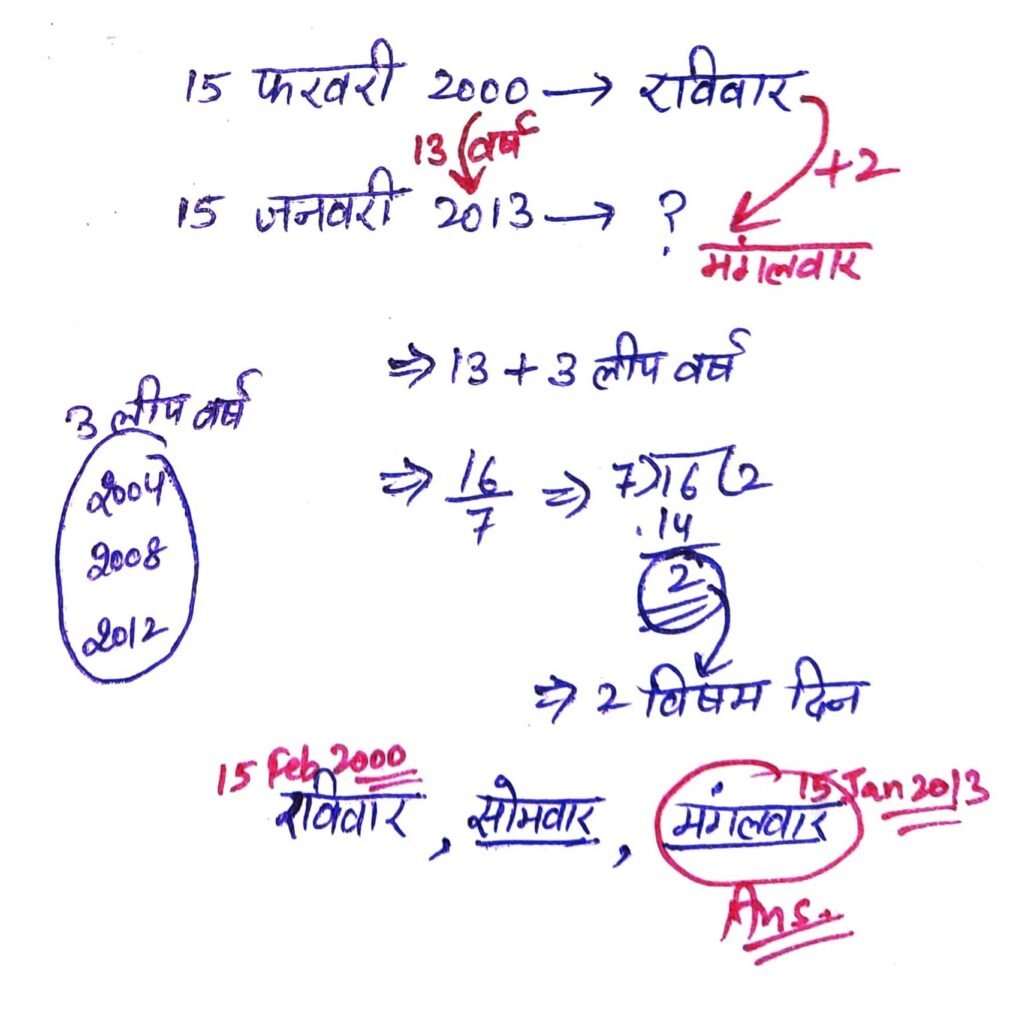 Q9. यदि 15 फरवरी , 2000 को रविवार था, तो 15 जनवरी, 2013 को कौन-सा दिन होगा?